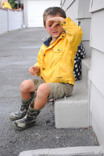 We finally got a little break from the heat with an afternoon (well, half an hour) of rain. Took us awhile to get outside, though. Even though it was still 85 degrees out, my kids were convinced they needed coats and boots. I was happy in my Rainbows.
